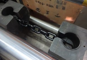The wide bed clearance allows testing of a broad range of specimens, including full-length samples, sling assemblies, and high-capacity components.
